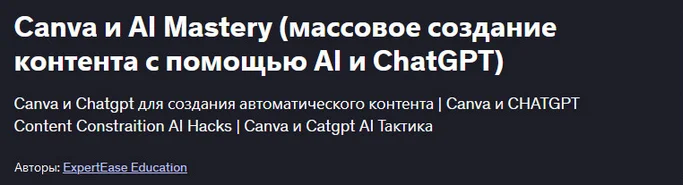 Скачать [ExpertEase Education] [Udemy] Canva и AI Mastery - массовое создание контента с помощью AI и ChatGPT (2025)