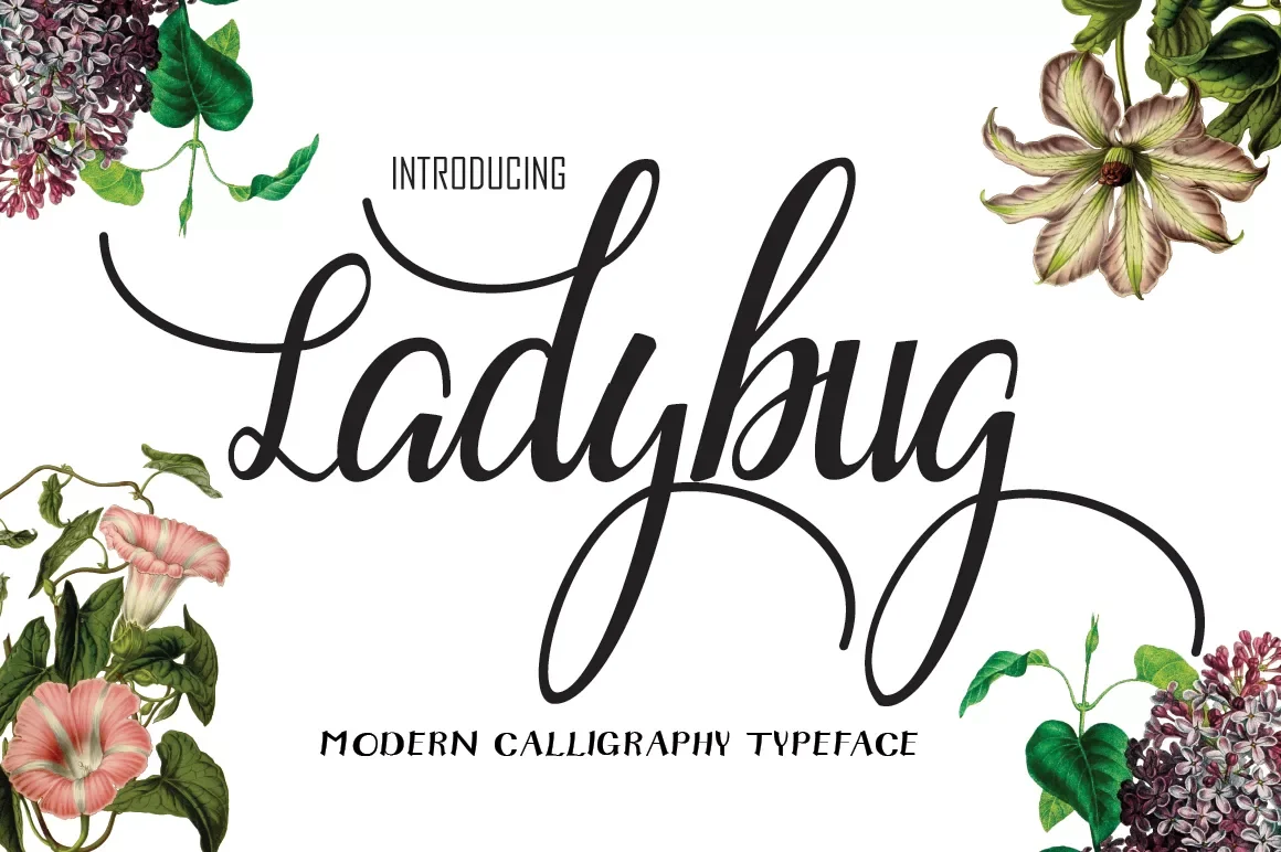 Божья коровка - это шрифт жирный, красивый и уникальный, он является образцом современных каллиграфических шрифтов в сочетании с каллиграфическим стилем письма.