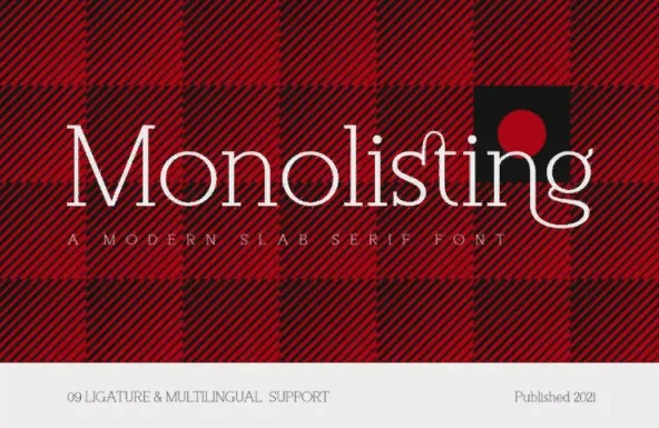 Monolisting - свежий шрифт с наклонной засечкой. Его можно легко подобрать к невероятно большому набору проектов, поэтому добавьте его в свои творческие идеи и обратите внимание, как он выделяет их!