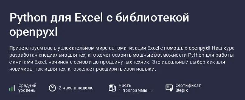 Скачать [Stepik, Future People] Python для Excel с библиотекой openpyxl (2025)