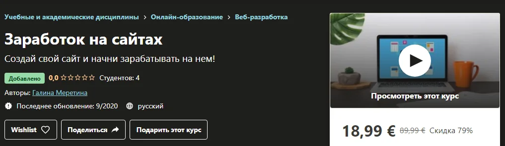 Название: Заработок на сайтах (2020)