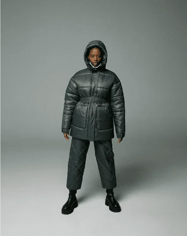 Куртка свободного объёма, прямого силуэта, длиной ниже линии бедер, на утеплителе и подкладке, с капюшоном.