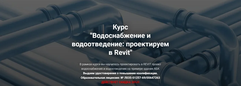 По результатам прохождения курса вы освоите проектирование раздела "Водоснабжение и водоотведение" в REVIT