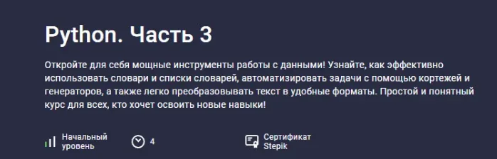 Этот курс идеально подходит для тех, кто только начинает свой путь в программировании, а также для тех, кто хочет расширить свои знания о работе с данными. Материалы курса изложены простым и понятным языком, а примеры и задания помогут вам закрепить каждую новую тему на практике.