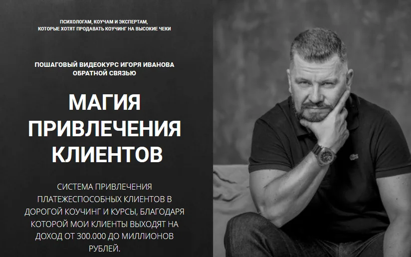 Если бы вернуть время, я бы купил такой курс за цену умноженную на 100. Так что если вам актуален вопрос повышения дохода от продажи коучинга и психологических услуг я рекомендую обратить пристальное внимание на этот курс. Делайте заказ и до встречи в курсе.