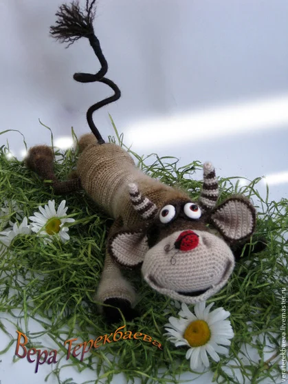 Игрушка связана крючком из мохера, сделана полностью на проволочном каркасе. Стоит самостоятельно. Глазки сделаны из запекаемойпластики.