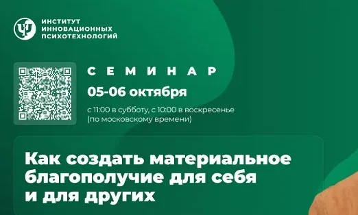 На семинаре «Как создать материальное благополучие для себя и других» представлена система психотехнологий, позволяющая наилучшим образом оптимизировать свои отношения с деньгами и их получением, включающая полное моделирование психологии интегрального благополучия, то есть создания себя как человека, который