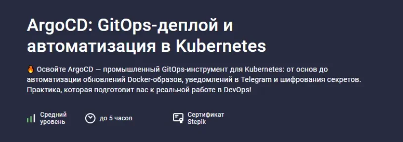 Этот курс — практическое руководство по ArgoCD и GitOps для Kubernetes. Он предназначен для тех, кто хочет научиться управлять приложениями через Git, автоматизировать деплой, обновления и уведомления, а также безопасно работать с секретами.