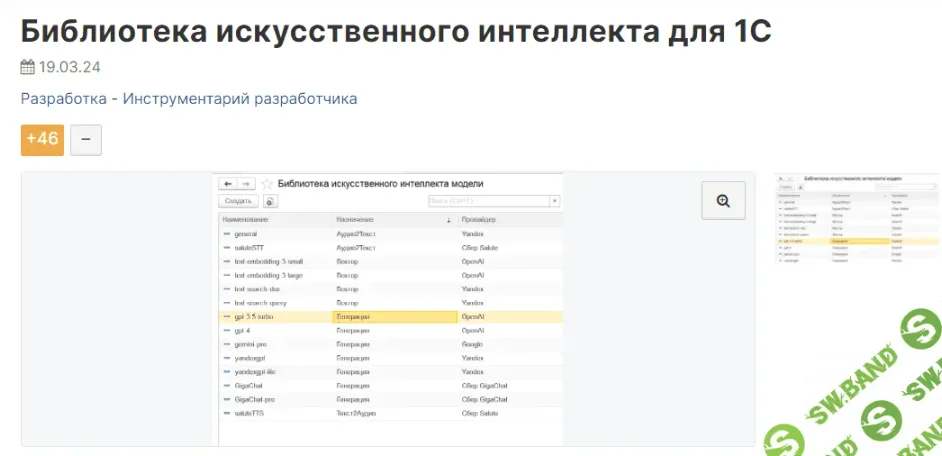 Уже год с лишним, как большие языковые модели (LLM GPT) находятся в центре внимания. За это время появилось понимание, как можно использовать данную технологию в связке с 1С. Кроме того, теперь у нас есть множество провайдеров. Среди них не только зарубежные, но и местные. Данная библиотека обобщает опыт использования искусственного интеллекта в 1С и дает вам возможность создавать собственные решения, не отвлекаясь на второстепенные технические детали.