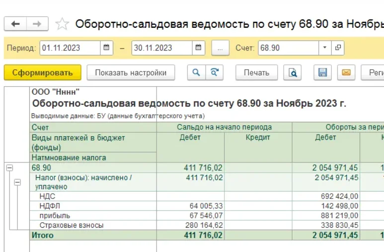 Для удобства сверки с ФНС в едином налоговом счете 68.90 настроим аналитику.