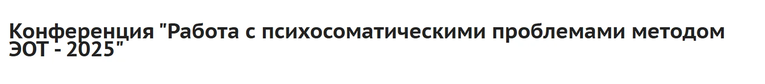 Дорогие, коллеги! Благодарим вас за интерес к первой онлайн-конференции Института ЭОТ Н.Линде "Работа с психосоматическими проблемами методом ЭОТ - 2025", которая состоялась 09.01.2025 и 10.01.2025.