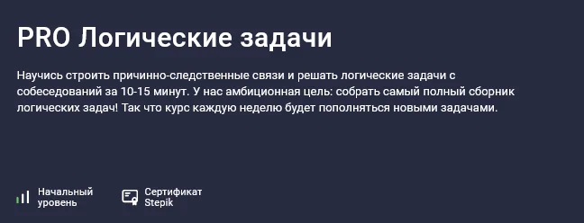 У нас амбиционная цель: собрать самый полный сборник логических задач! Так что курс каждую неделю будет пополняться новыми задачами.