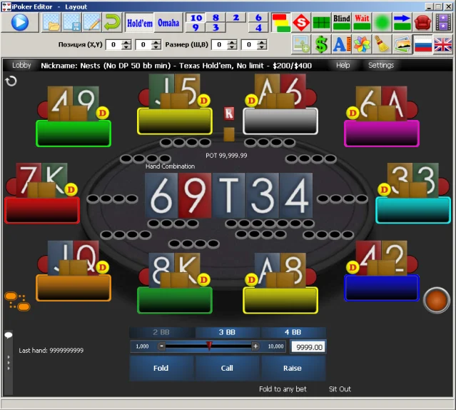 С помощью визуального редактора iPoker Editor можно легко изменить графику, размеры и положения компонентов на столе, а также размер шрифта и цвет надписей.