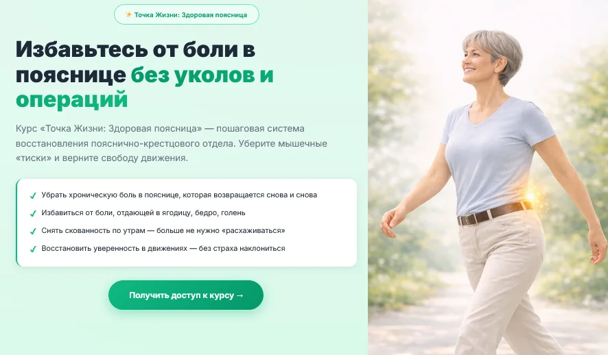 Курс «Точка Жизни: Здоровая поясница» — пошаговая система восстановления пояснично-крестцового отдела.