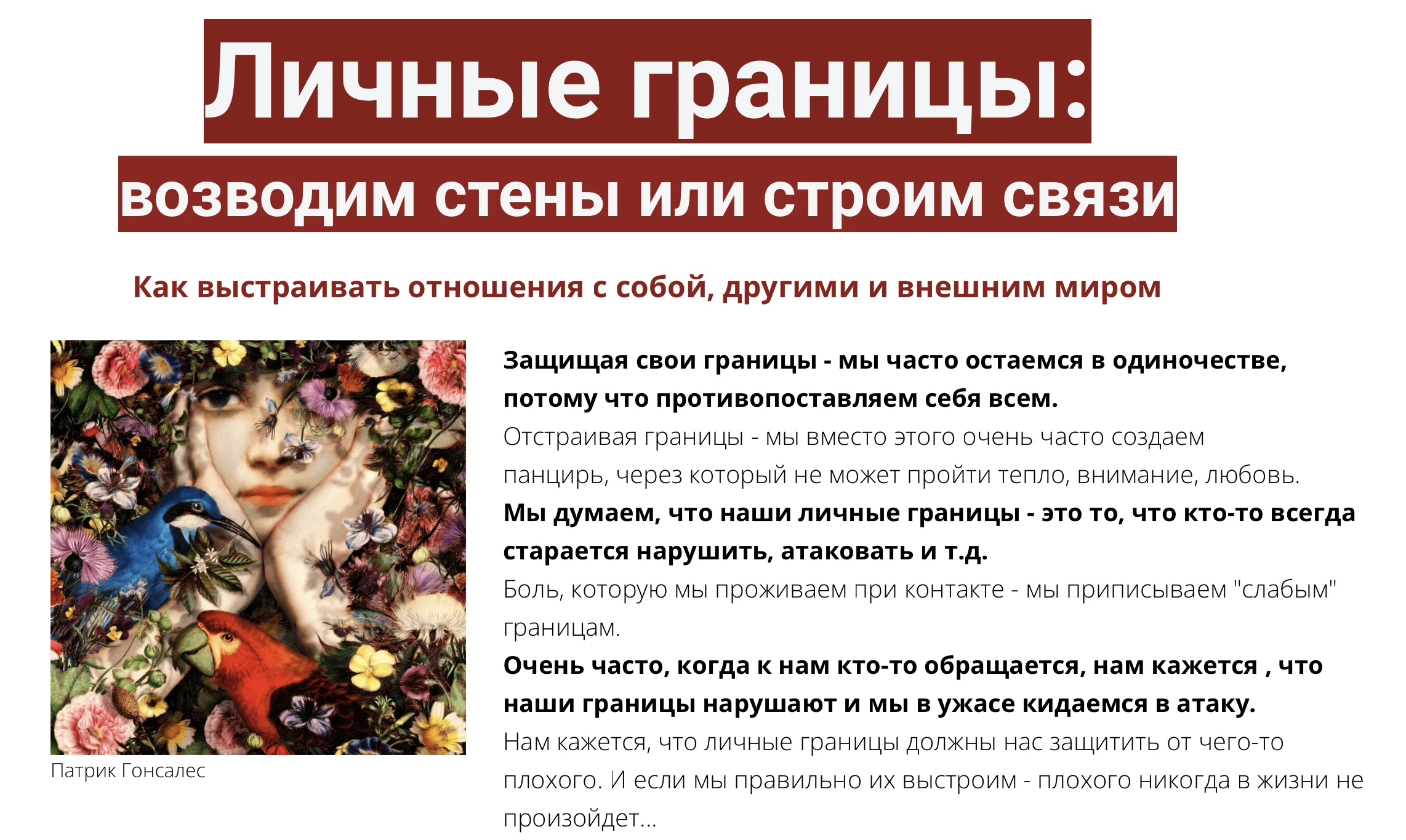Как выстраивать отношения с собой, другими и внешним миром. Экология личных границ.