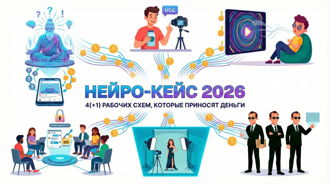 Скачать [Авторская] Нейро-Кейс 2026: 4 (+1) рабочих моделей заработка. Цифровой гуру, YouTube-залипалово и прибыльные ИИ-агенты без знания кода