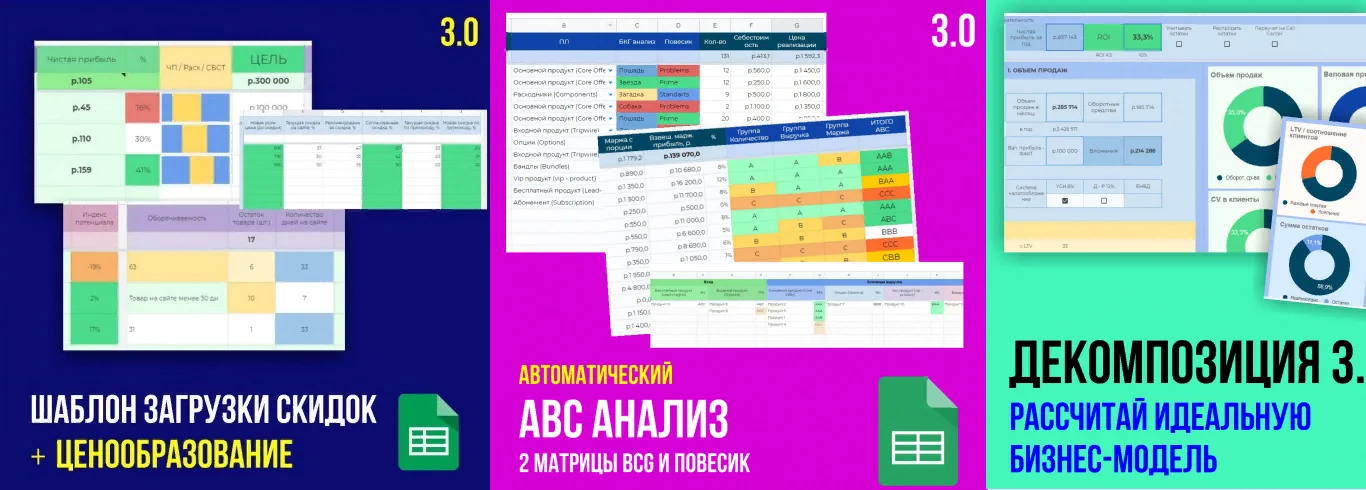 Название: Шаблоны (таблицы): Декомпозиция, Ценообразование Wildberries, ABC-анализ (2020)