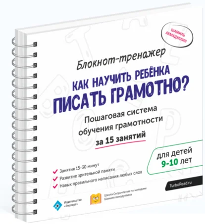 Данный блокнот-тренажер позволит неграмотному ребенку стать грамотным. Научиться писать без ошибок и значительно повысить свою успеваемость в школе по русскому языку. А главное - усвоить принцип запоминания правильного написания любых слов. При этом приятным сопутствующим эффектом тренинга будет улучшение памяти ребенка, ведь многие упражнения направлены именно на ее тренировку. Этот тренажер прошел испытания в Школах скорочтения и развития памяти по методике Шамиля Ахмадуллина и подтвердил свою эффективность на примерах тысяч наших учеников.