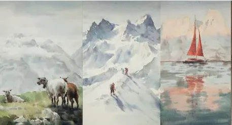 - Альпинисты. Акварель. Разбираем понятие «акцент». Работаем с высокой точкой зрения. Передаём глубину пространства.