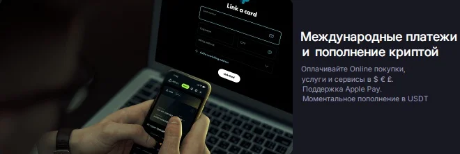 - совершать онлайн-оплату различных сервисов, подписок, медиа - с помощью карты с USD
