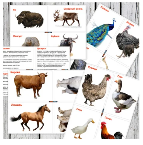 1) Карточки можно просто показывать ребенку, рассказывая о животном.