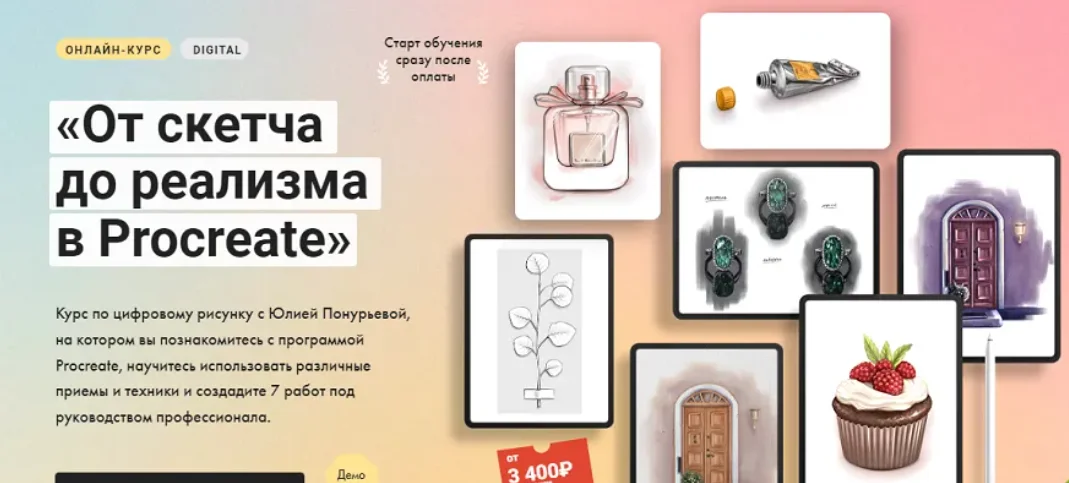 Курс по цифровому рисунку с Юлией Понурьевой, на котором вы познакомитесь с программой Procreate, научитесь использовать различные приемы и техники и создадите 7 работ под руководством профессионала.