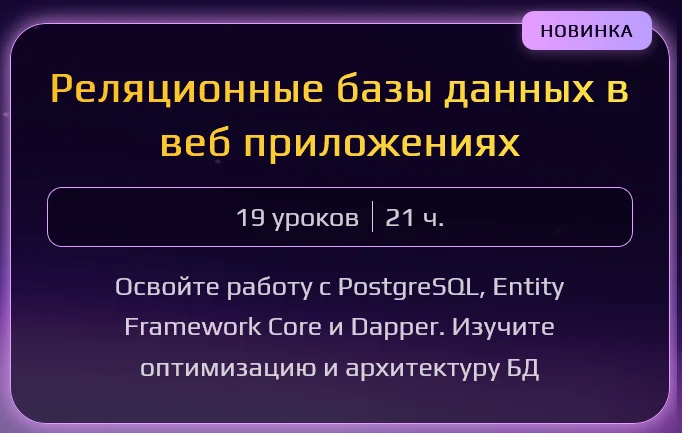 Освойте PostgreSQL, Entity Framework Core и Dapper для создания эффективных и масштабируемых решений с правильной архитектурой доступа к данным и производительными запросами.