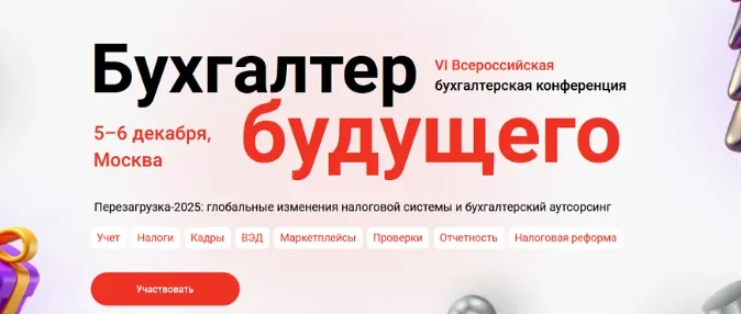 5 и 6 декабря в Москве пройдет VI Всероссийская конференция «Бухгалтер будущего. Перезагрузка-2025: глобальные изменения налоговой системы и бухгалтерский аутсорсинг».