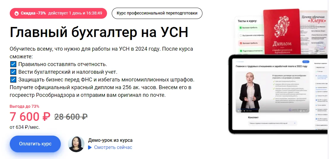 Обучитесь всему, что нужно для работы на УСН в 2024 году. После курса сможете: