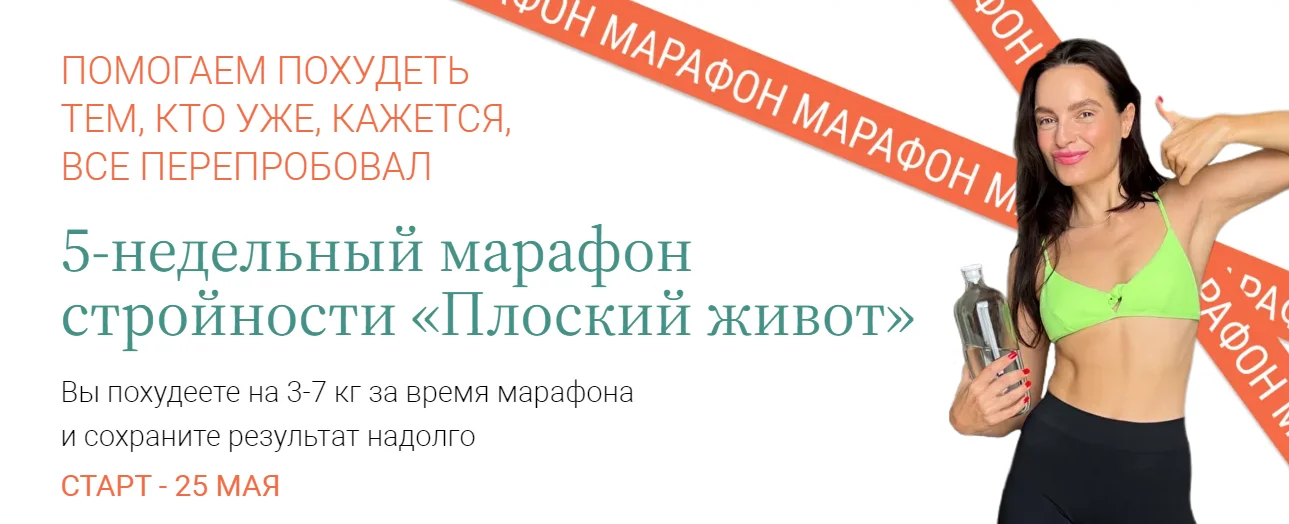 Вы похудеете на 3-7 кг за время марафона (5 недель) и сохраните результат надолго