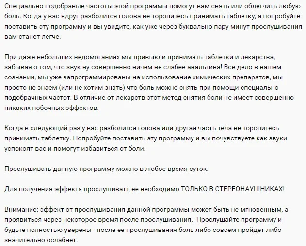 Название: Программа снятия или облегчения боли