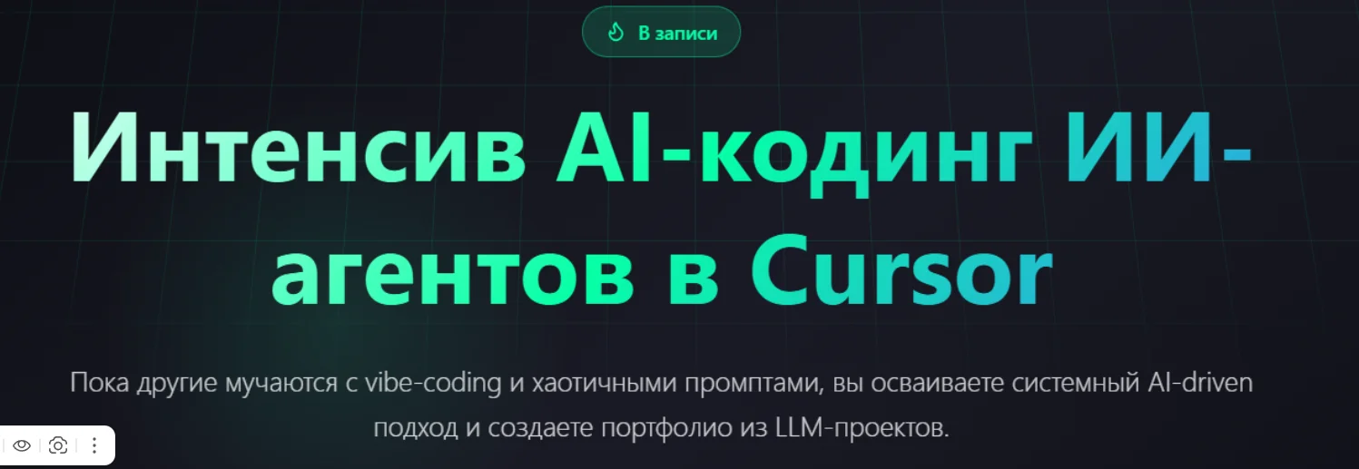 Практический 4-часовой онлайн-интенсив, на котором вы научитесь создавать качественные и полноценные продукты в Cursor AI. Вы получите воспроизводимую систему AI-driven разработки, которую сможете применять снова и снова.