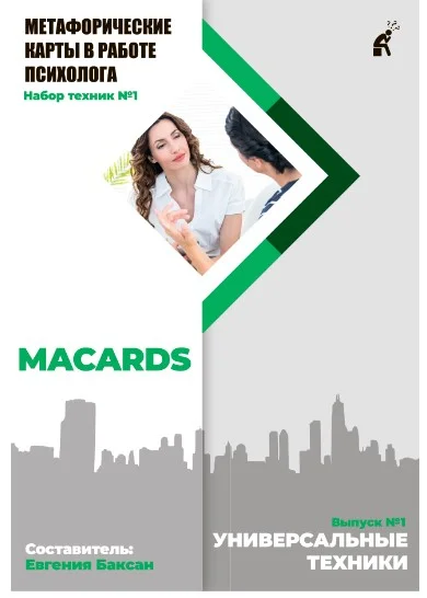 Инструмент представляет собой тематический набор карточек, с подробными инструкциями и краткими схемами техник для работы с МАК.