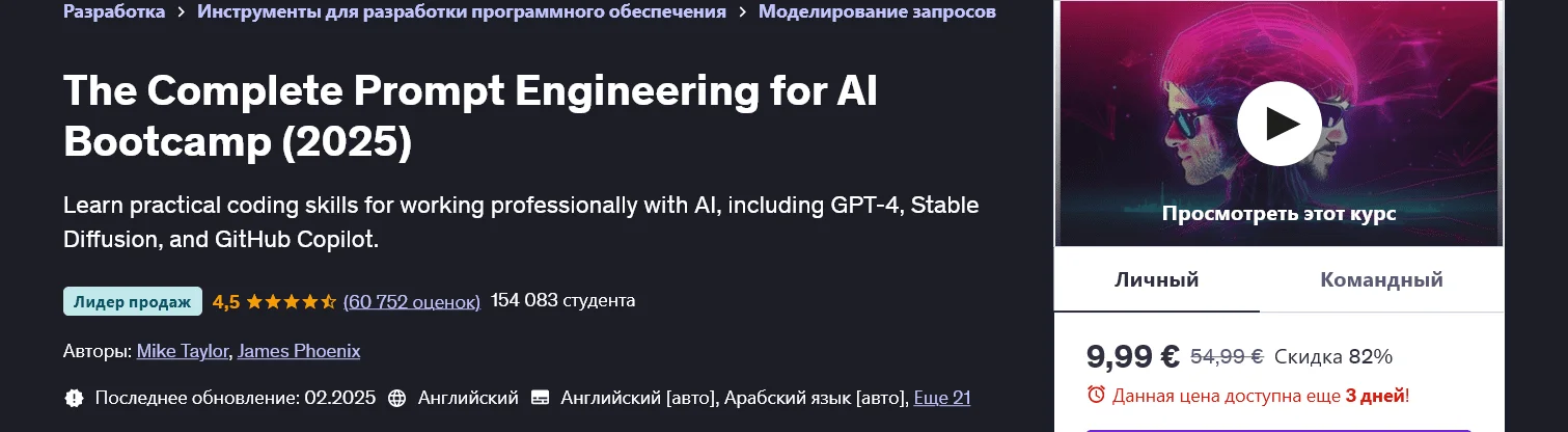 Скачать [Майк Тейлор, Джеймс Финикс] [Udemy] Полный курс по промпт инжинирингу ИИ (2025)