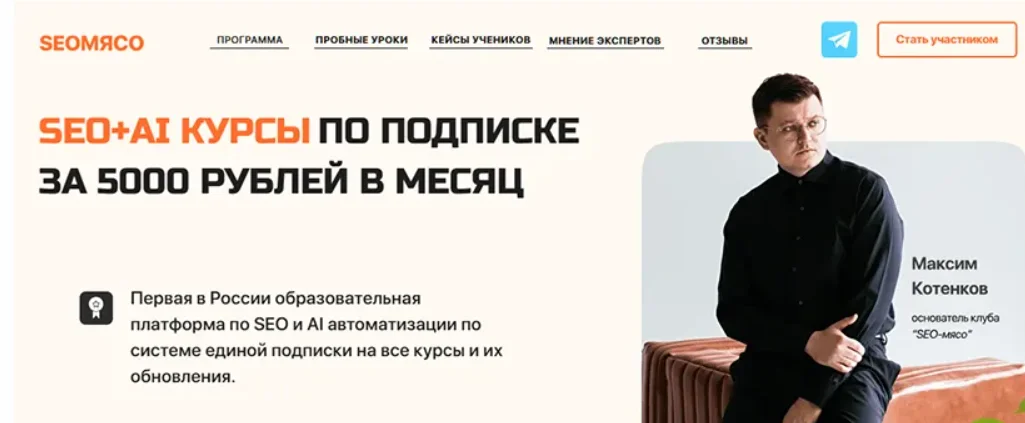 SEO-Мясо - это первая в России образовательная платформа по SEO и автоматизации с использованием AI, построенная в формате единой подписки с доступом ко всем курсам и их обновлениям.