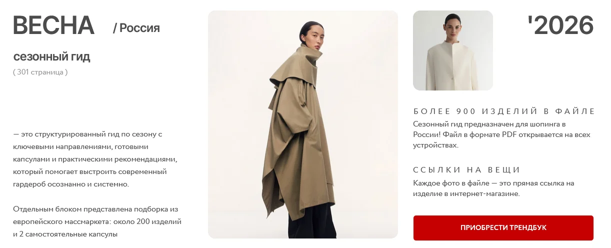 Это структурированный гид по сезону с ключевыми направлениями, готовыми капсулами и практическими рекомендациями, который помогает выстроить современный гардероб осознанно и системно.