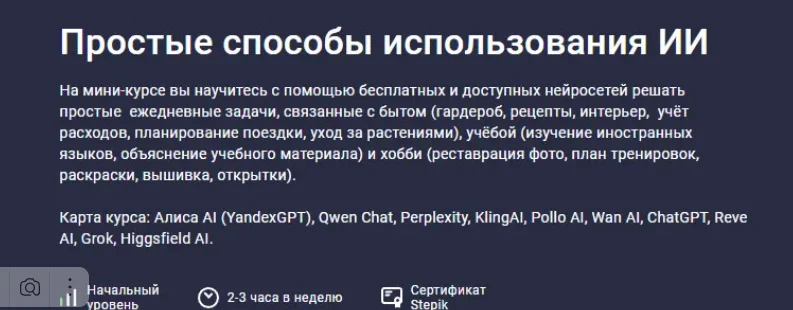 Курс подходит как новичкам, так и уверенным пользователям, знакомым с разными нейросетями и чат-ботами.