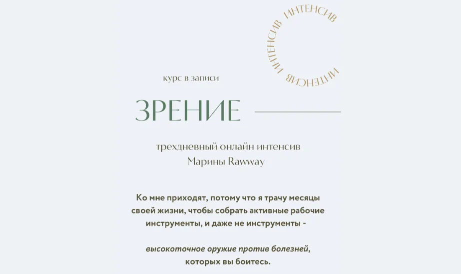 Я приглашаю вас на уникальный онлайн интенсив. где воедино собраны инструменты натуропатии, здорового питания, остеопатии и ароматерапии для восстановления и поддержки зрения.