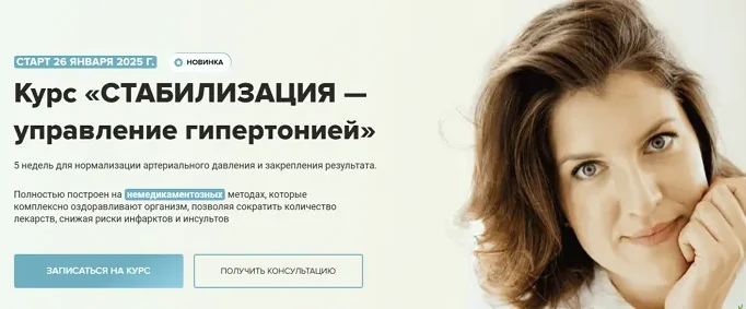 - В результате самостоятельной работы по алгоритмам курса «СТАБИЛИЗАЦИЯ — управление гипертонией» также происходит профилактика: ИБС, атеросклероза, инфаркта, инсульта, сахарного диабета (особенно II типа), рака, остеопороза, деменции, расстройств тревожно-депрессивного спектра.