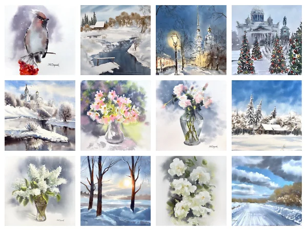 Курс пейзажный, поскольку именно с пейзажей легко начинать, они позволяют делать большие заливки, а значит осваивать технику на хлопке по-мокрому, параллельно с этим изучая необходимую теорию. В курсе нет примитивных сюжетов. Задания не позволят вам делать детские рисунки, не будет "рисуем елочку поэтапно". Все они полноценные, серьезные, очень полезные, но совсем не скучные! Вы создадите полноценные работы, которыми будете гордиться. Вы не будете повторять шаблоны, но освоите все навыки и приемы, нужные для пейзажей, узнаете основные принципы, позволяющие вам создавать собственные картины.