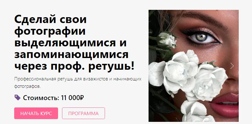 - Готовы инвестировать время в обучение и повысить свою квалификацию; после обучения Вы сможете зарабатывать дополнительно на ретуши фотографий других визажистов или фотографов (цена ретуши за фото примерно 600-1000 рублей).
