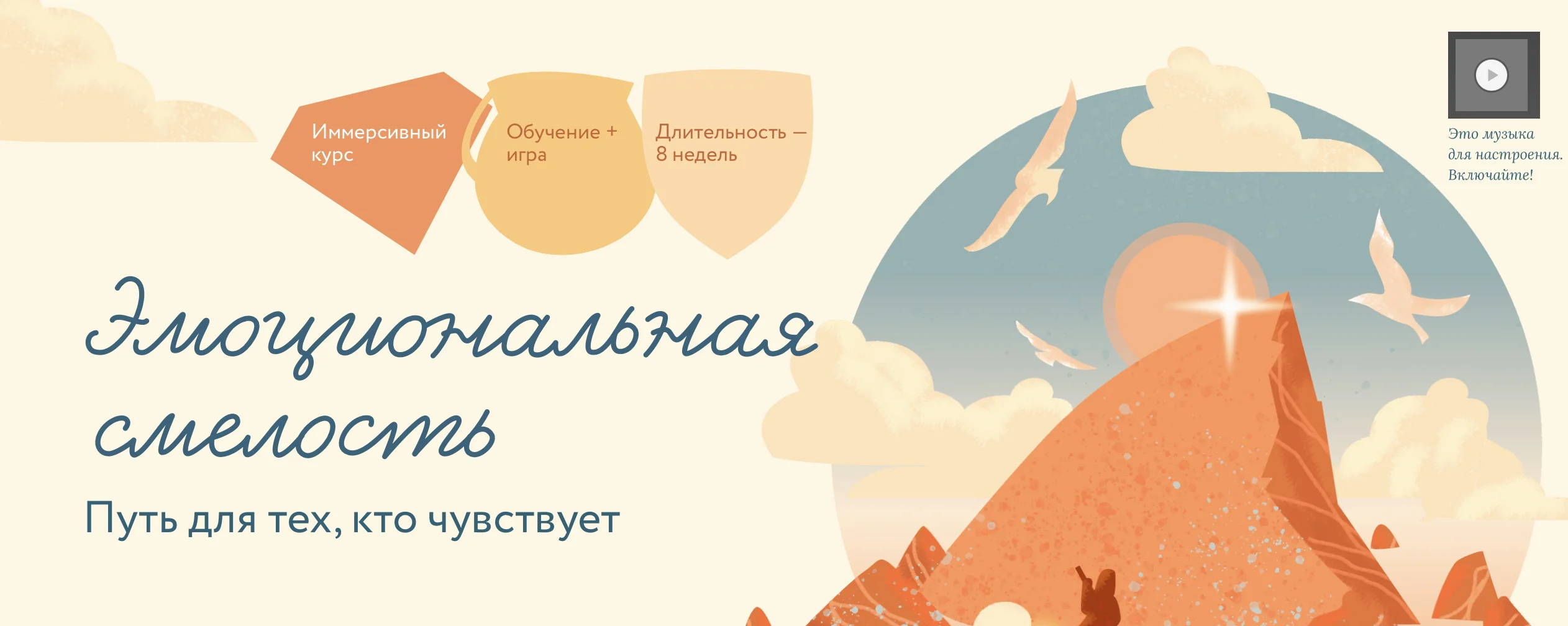 Этот курс — для тех, хочет управлять собой и своими чувствами, иметь внутренний компас и полагаться на него в разных жизненных ситуациях. Всё начинается с зова — ощущения «хочу что-то изменить». У каждого — свой зов. Что откликается вам?