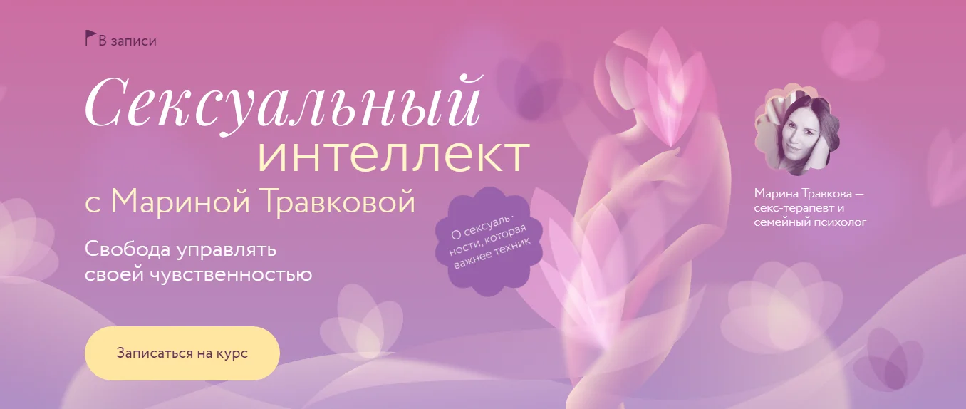 Этот курс — о смысле сексуальности. О том, как мы воспринимаем себя и интимную сторону жизни. Вместе с секс-терапевтом Мариной Травковой займемся развитием сексуального интеллекта и научимся говорить о сокровенном так, чтобы стать счастливее.