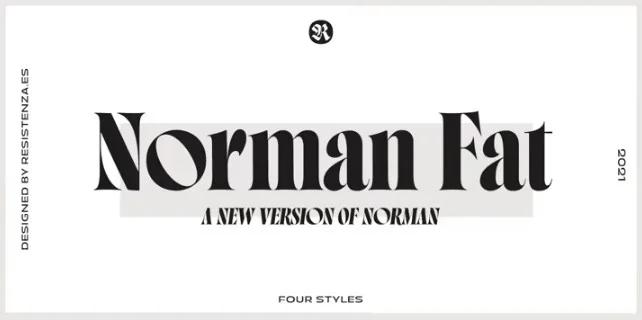 Познакомьтесь с Norman Fat - новой версией нашего бестселлера Norman, элегантной и модной. Этот новый конденсированный высококонтрастный и тяжелый шрифт с засечками основан на расширении, дающем ощущение уверенности в себе. Косая ось была специально добавлена, чтобы придать шрифту современный и инновационный смысл.
