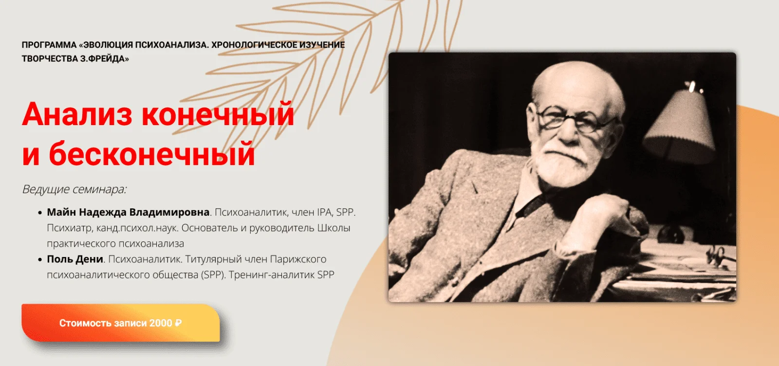 Программа «Эволюция психоанализа» продолжается разбором работы З.Фрейда «Анализ конечный и бесконечный».