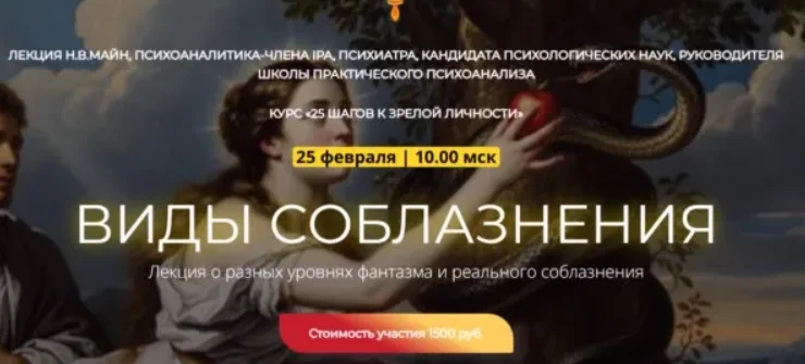 Почему человек поддаётся соблазнам, может ли он удержаться и всегда ли это плохо — дать себя соблазнить? О разных видах и уровнях соблазнения, от архаичного до зрелого, речь и пойдёт на лекции.