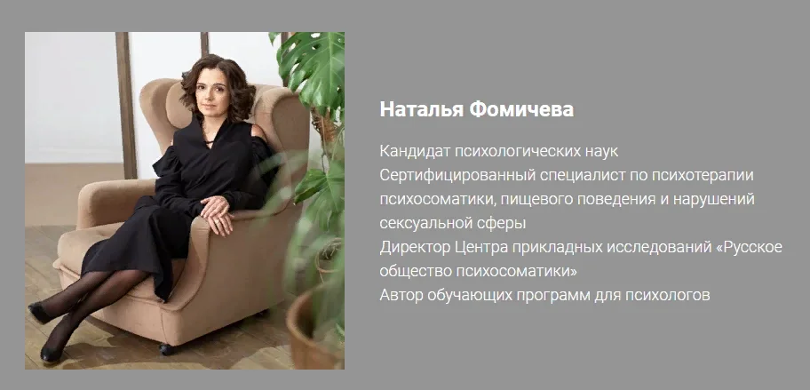 Сертифицированный специалист по психотерапии психосоматики, пищевого поведения и нарушений сексуальной сферы