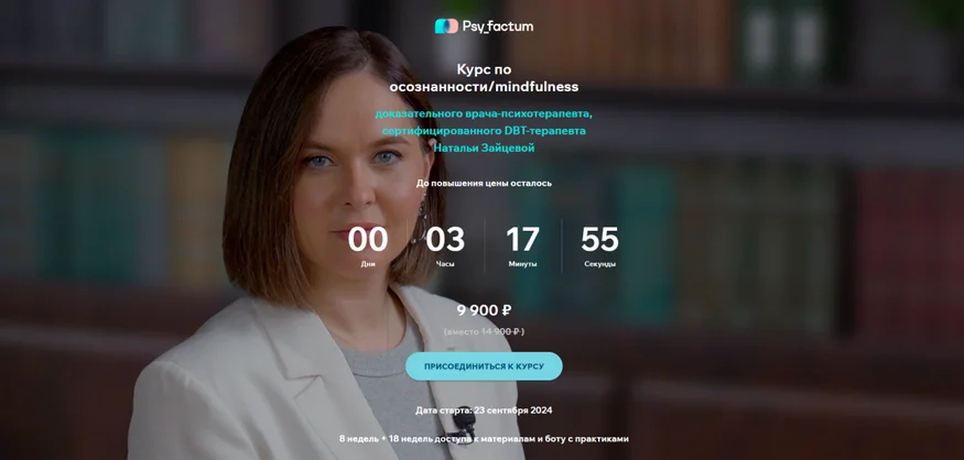 Курс по осознанности/mindfulness доказательного врача-психотерапевта, сертифицированного DBT-терапевта Натальи Зайцевой
