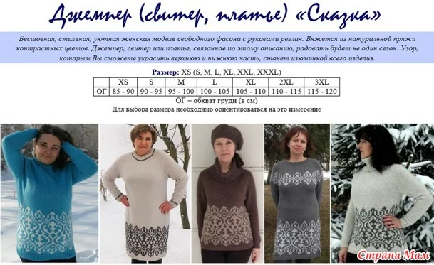 Вяжется из натуральной пряжи контрастных цветов. Джемпер, свитер или платье, связанное по этому описанию, радовать будет не один сезон. Узор, которым Вы сможете украсить верхнюю и нижнюю часть, станет изюминкой всего изделия.