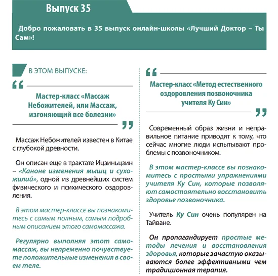 Добро пожаловать в тридцать пятый выпуск онлайн-школы «Лучший Доктор – Ты Сам»!